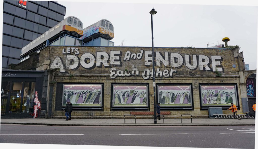 “Lets adore and endure each other” by Steve “ESPO” Powers, 2010, Great Eastern Street and Shoreditch High Street.