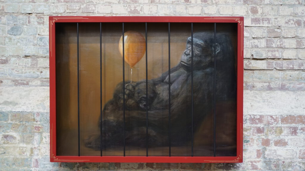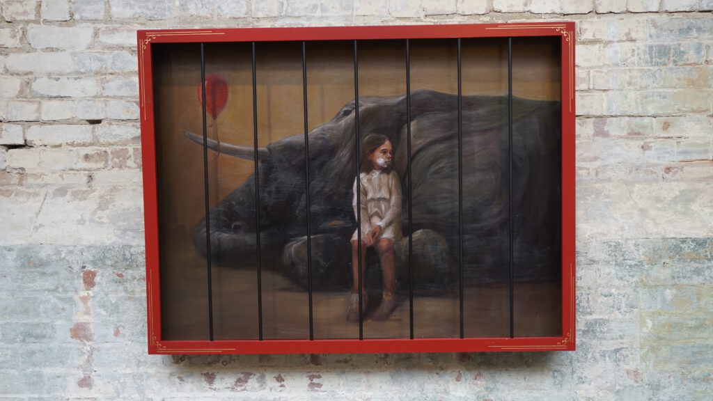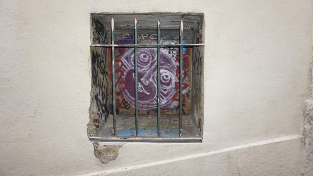 There is something about street art images being set behind bars that cracks me up. If you want to read into it – then it could represent an unacceptable constraint upon artistic vision. Or the bars may simply be imposing a conceptual challenge upon the execution of a piece of art. Street art is still in an awkward phase, either being considered a public nuisance or being monetized as a tourist-driven cultural asset.