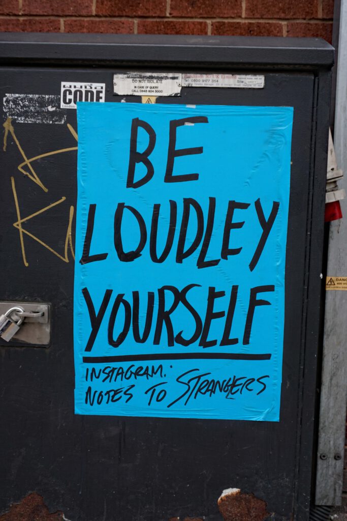 Somebody is running around the town of London posting platitudinal messages on available surfaces with the sole aim and pleasure of getting their messages posted on Instagram.