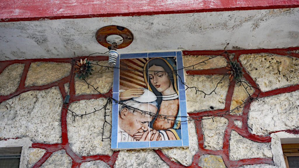 Non-sectarian street art does exist here, but it seems to be philosophically outnumbered by the art-and-craft themed religious installations dedicated to the kindness and generous nature of the 16th century mother of god.