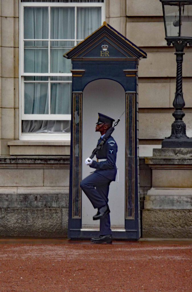 Practically the sole affinity that artists and the public might feel when standing in front of Buckingham Palace may be sympathy for that poor guard dressed in a dark uniform, loyally marching back and forth regardless of the weather.
