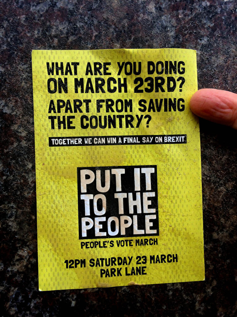 It is a public outcry. A call to mobilize and to stand up to the absurdities of the past two years and pressure the current government to listen to other voices. Their chosen mottos of “Together we can win a final say on Brexit” and a demand to “Put it to the People” are their keys to saving the country.